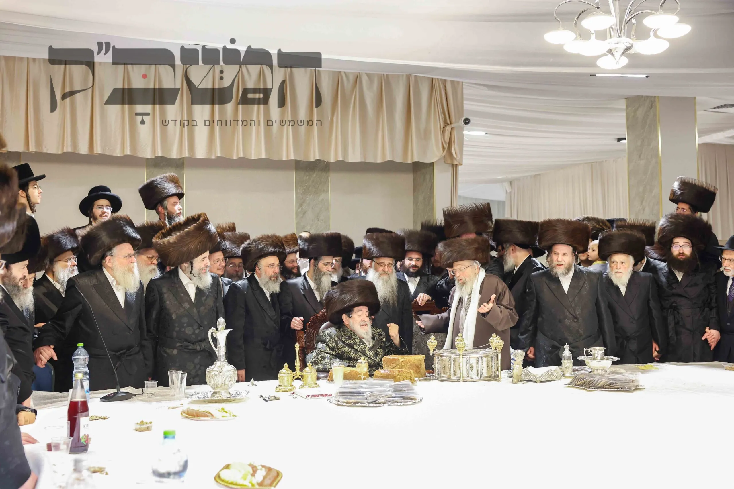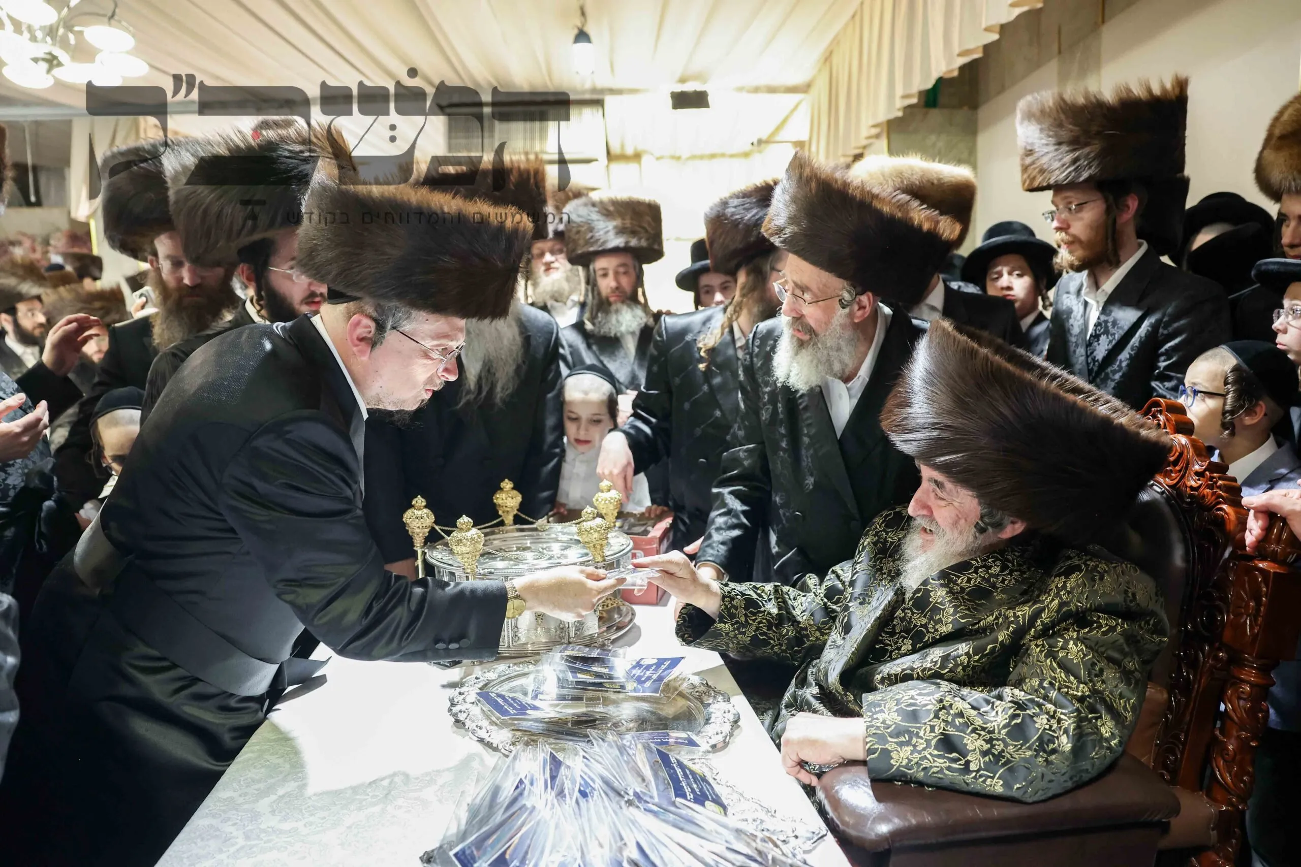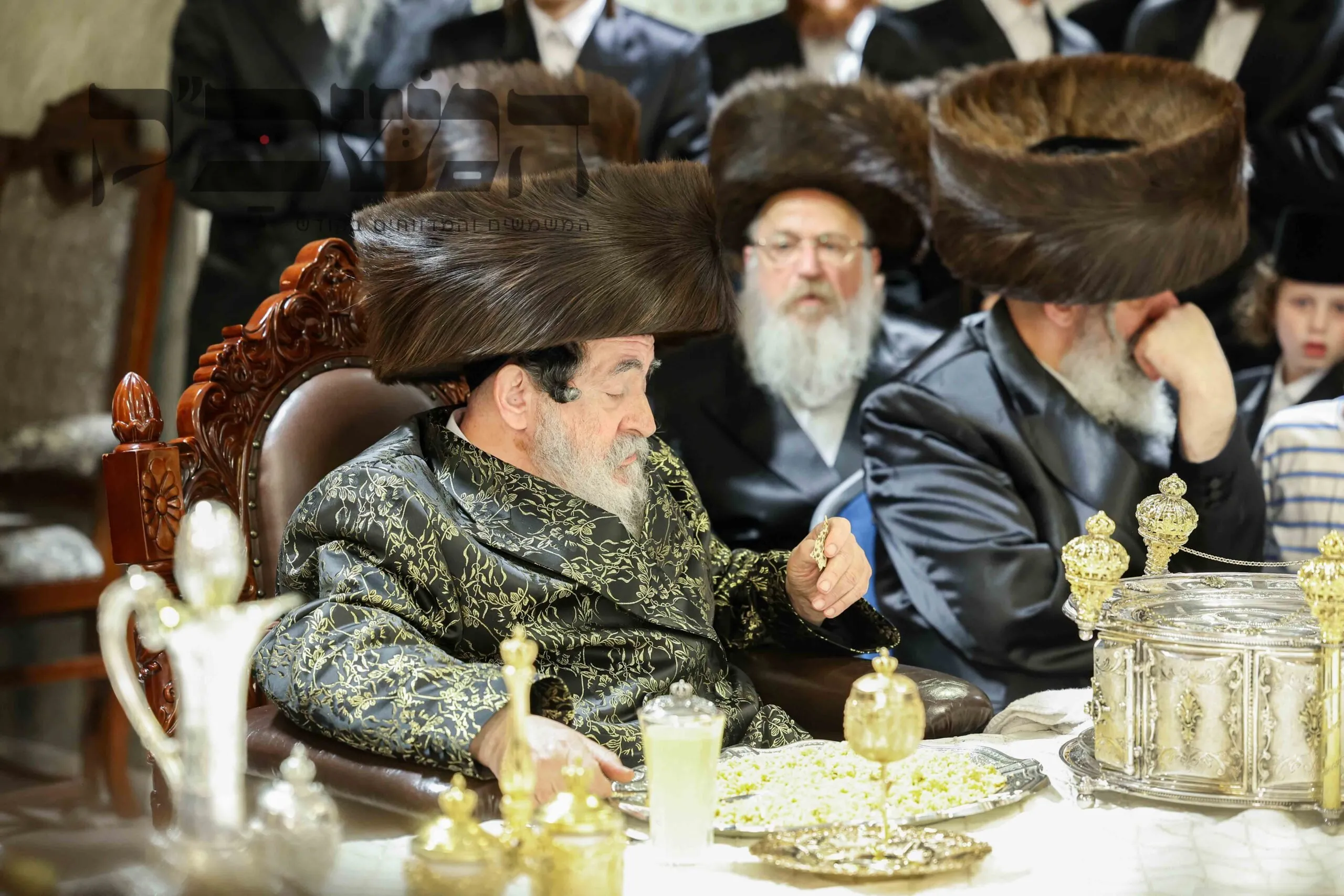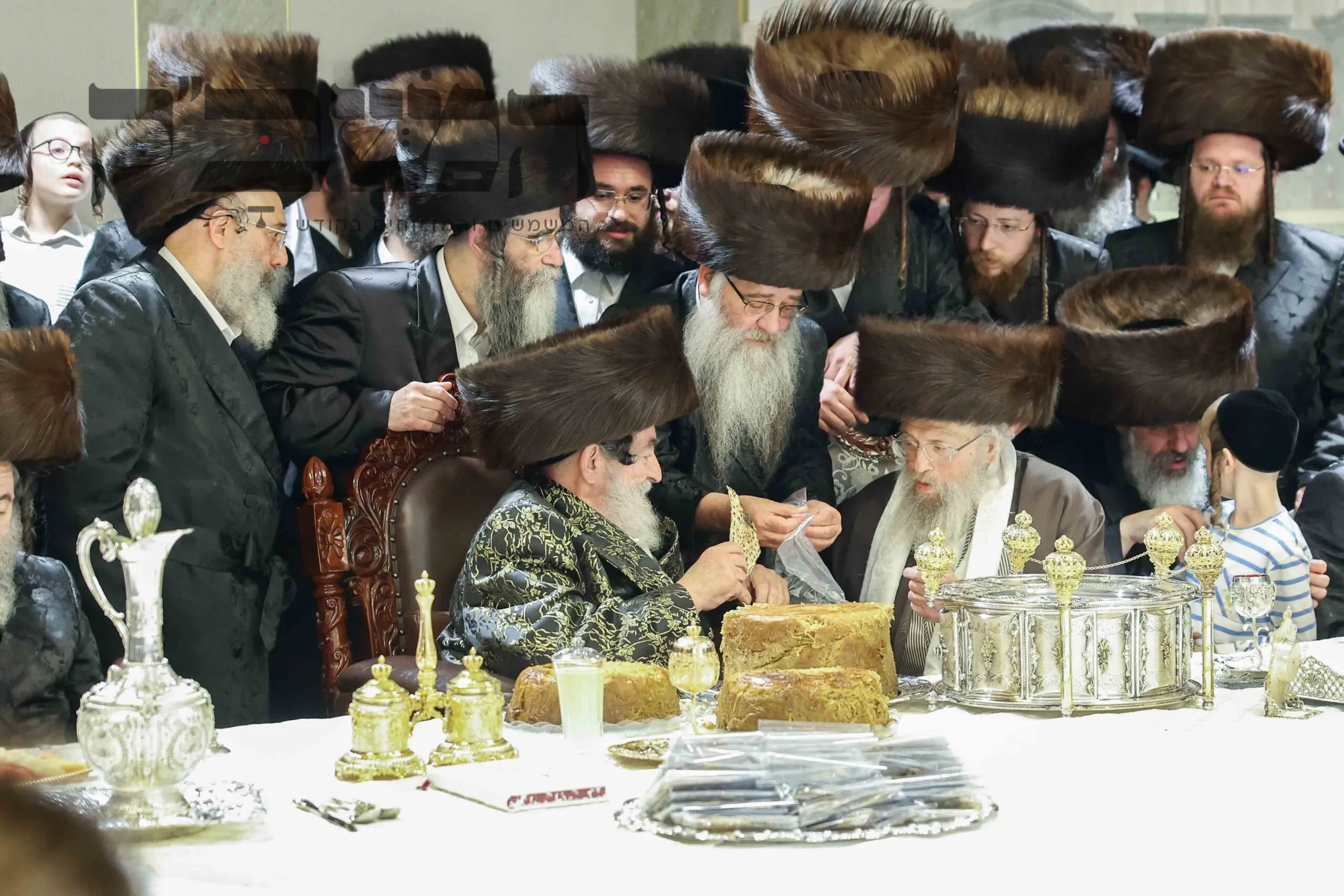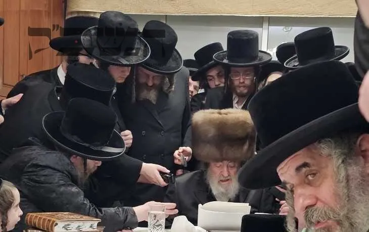 תיעוד מסכם מחצה"ק ויז'ניץ ממים שלנו. בדיקת חמץ. ושולה"ט בחול המועד. בטיש השתתפו גדולי תומכי נדיבי העם שתרמו סכומים נכבדים לטובת קמחא דפסחא. במהלך הטיש הופיע האדמו"ר מפינסק קרלין, ולאחר שנשא דברות קודש פצח בריקוד נלהב לפני האדמו"ר מויז'ניץ שעודד בעוז את השירה. בסיום הטיש עברו הנדיבים לקבלת מצה שמירה מהרבי . צילום: א. אייזנבאך – מאיר פרקש
