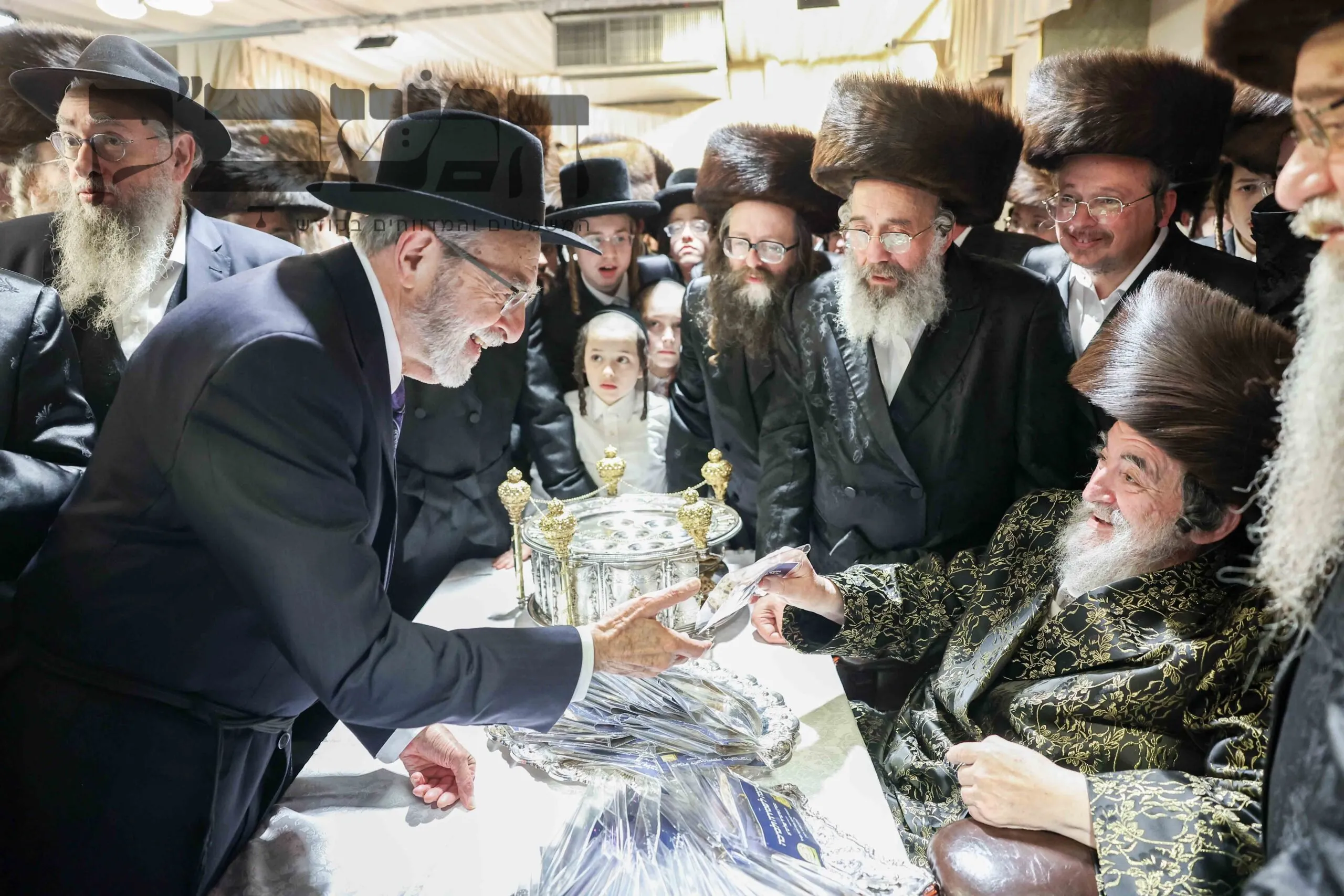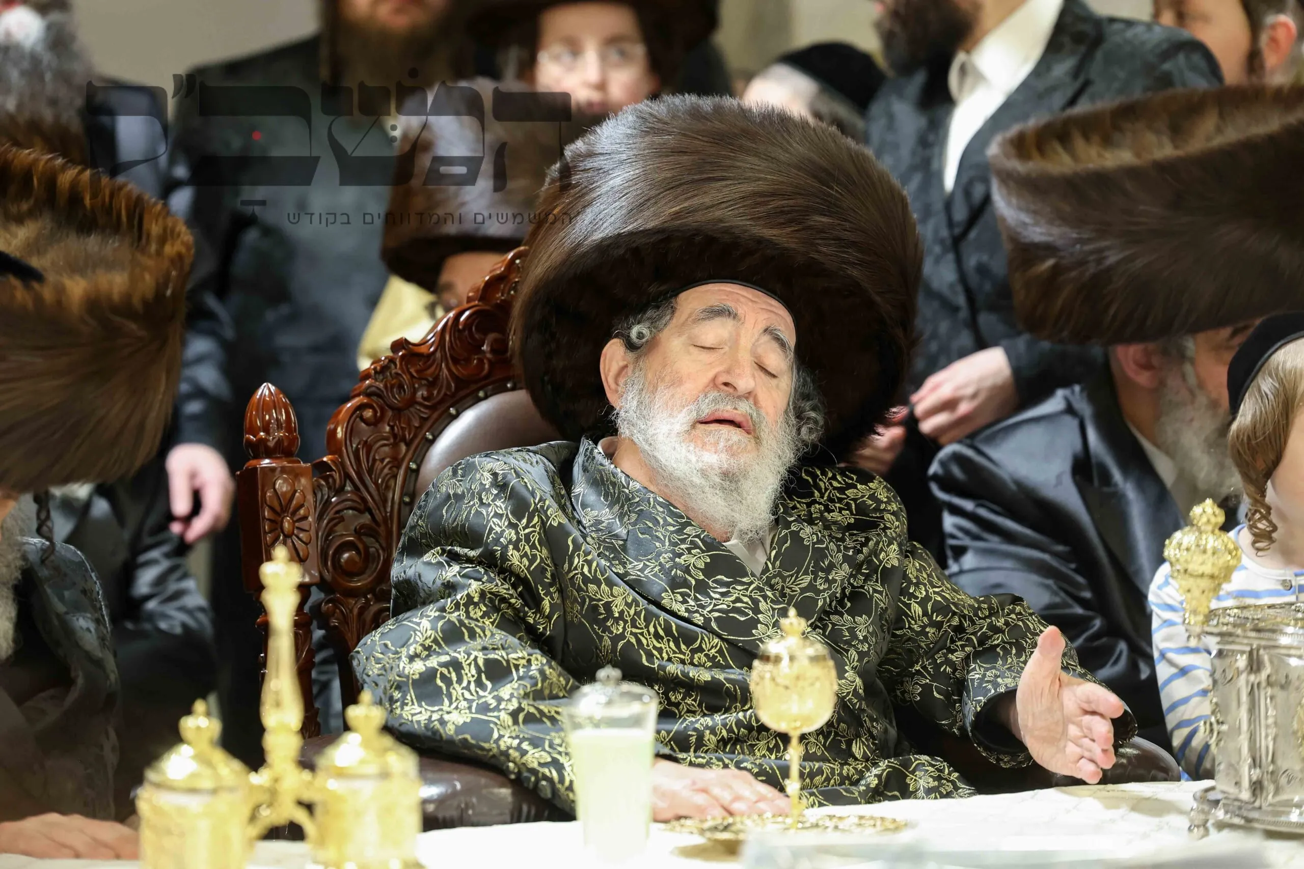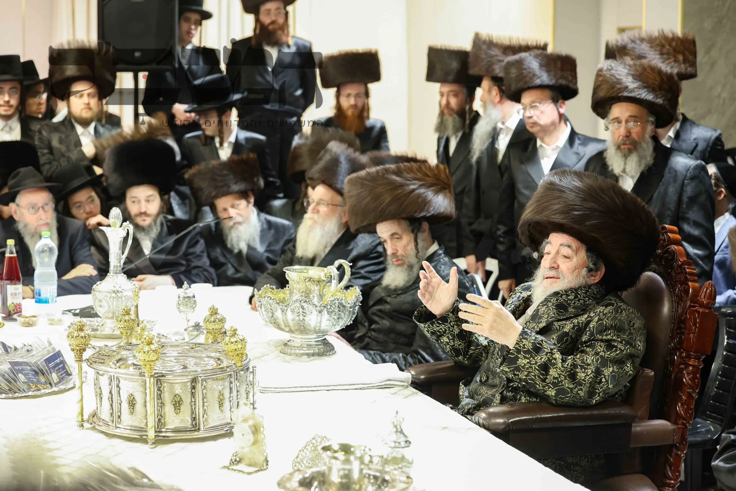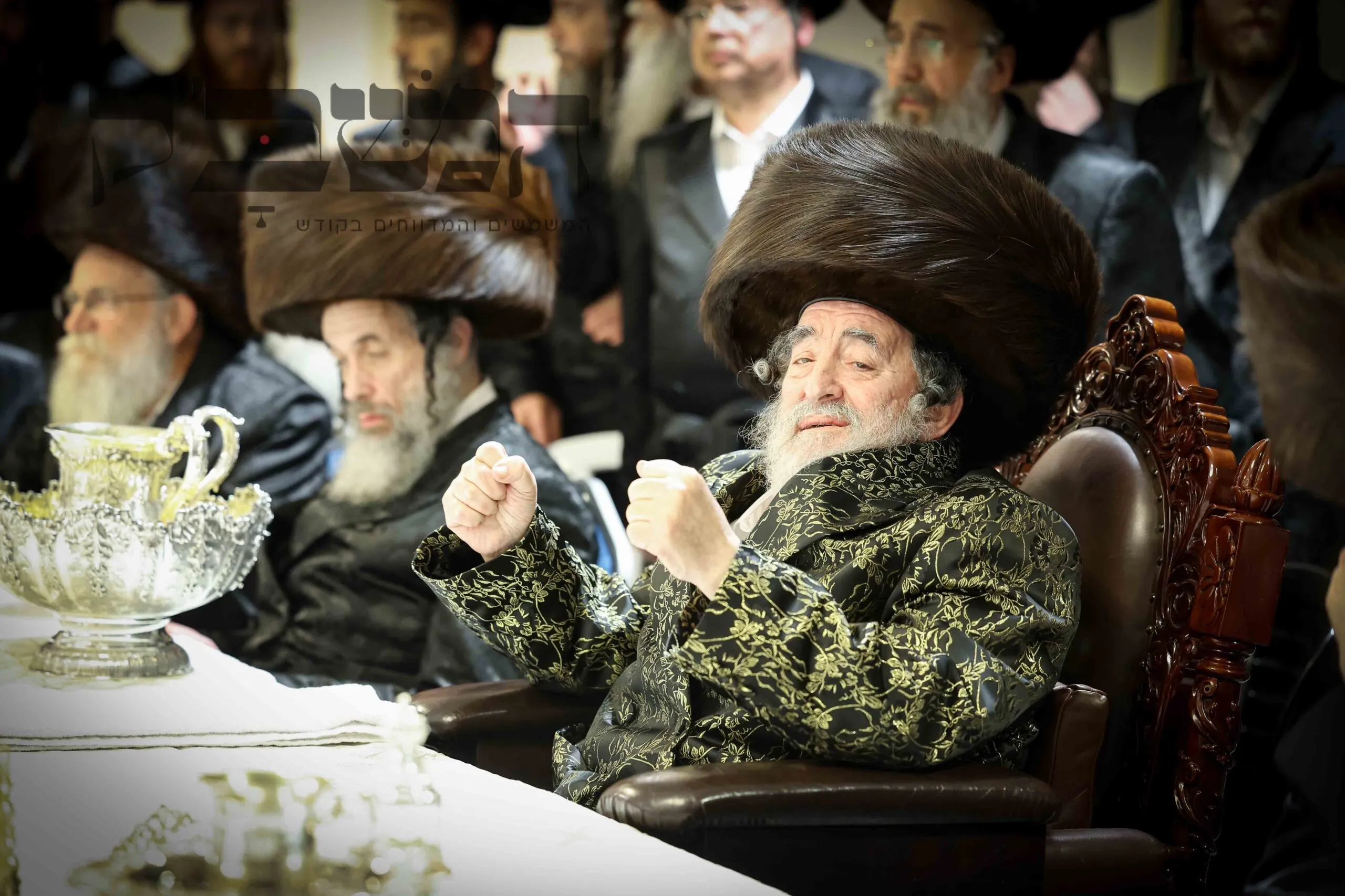 תיעוד מסכם מחצה"ק ויז'ניץ ממים שלנו. בדיקת חמץ. ושולה"ט בחול המועד. בטיש השתתפו גדולי תומכי נדיבי העם שתרמו סכומים נכבדים לטובת קמחא דפסחא. במהלך הטיש הופיע האדמו"ר מפינסק קרלין, ולאחר שנשא דברות קודש פצח בריקוד נלהב לפני האדמו"ר מויז'ניץ שעודד בעוז את השירה. בסיום הטיש עברו הנדיבים לקבלת מצה שמירה מהרבי . צילום: א. אייזנבאך – מאיר פרקש