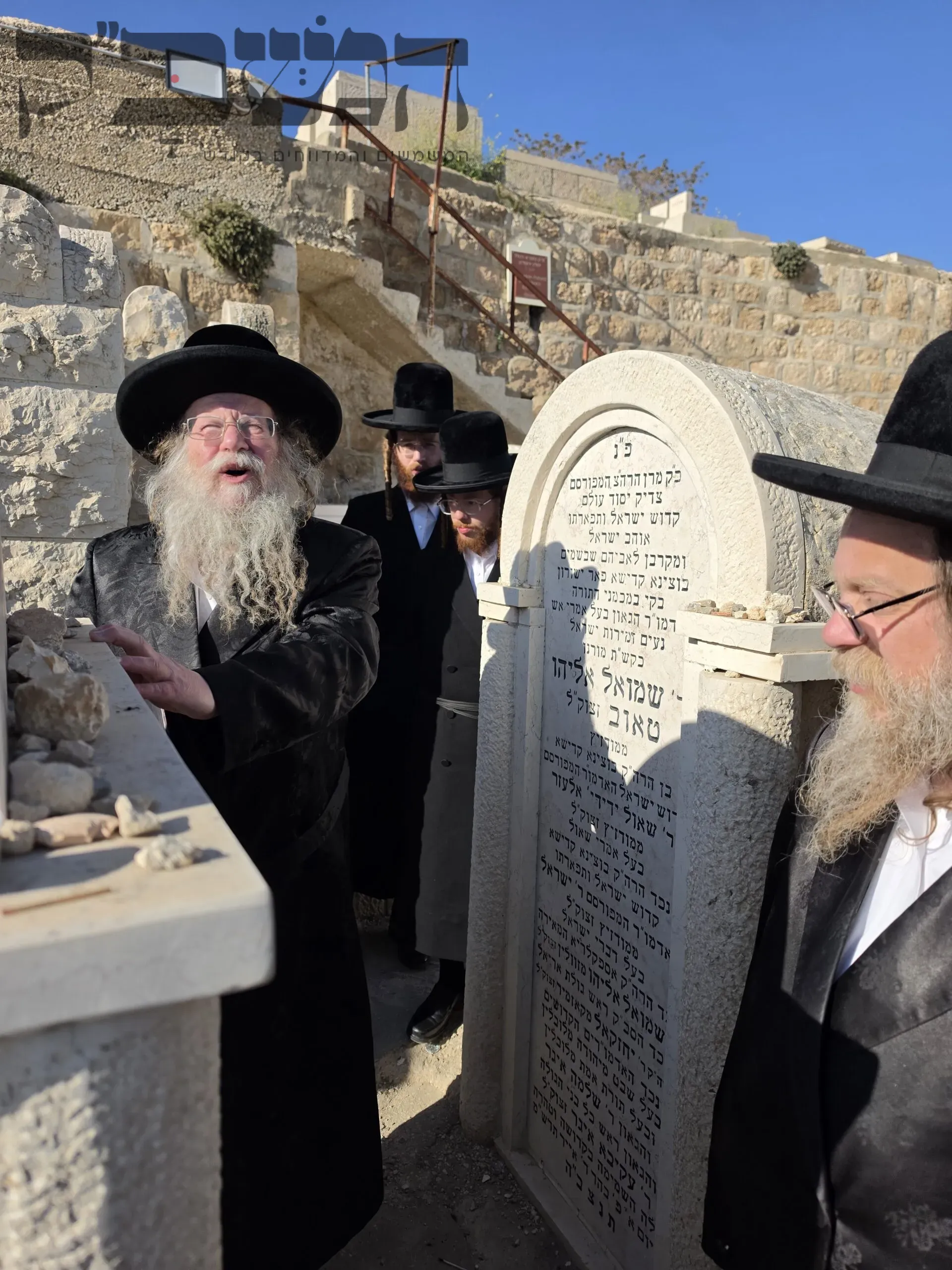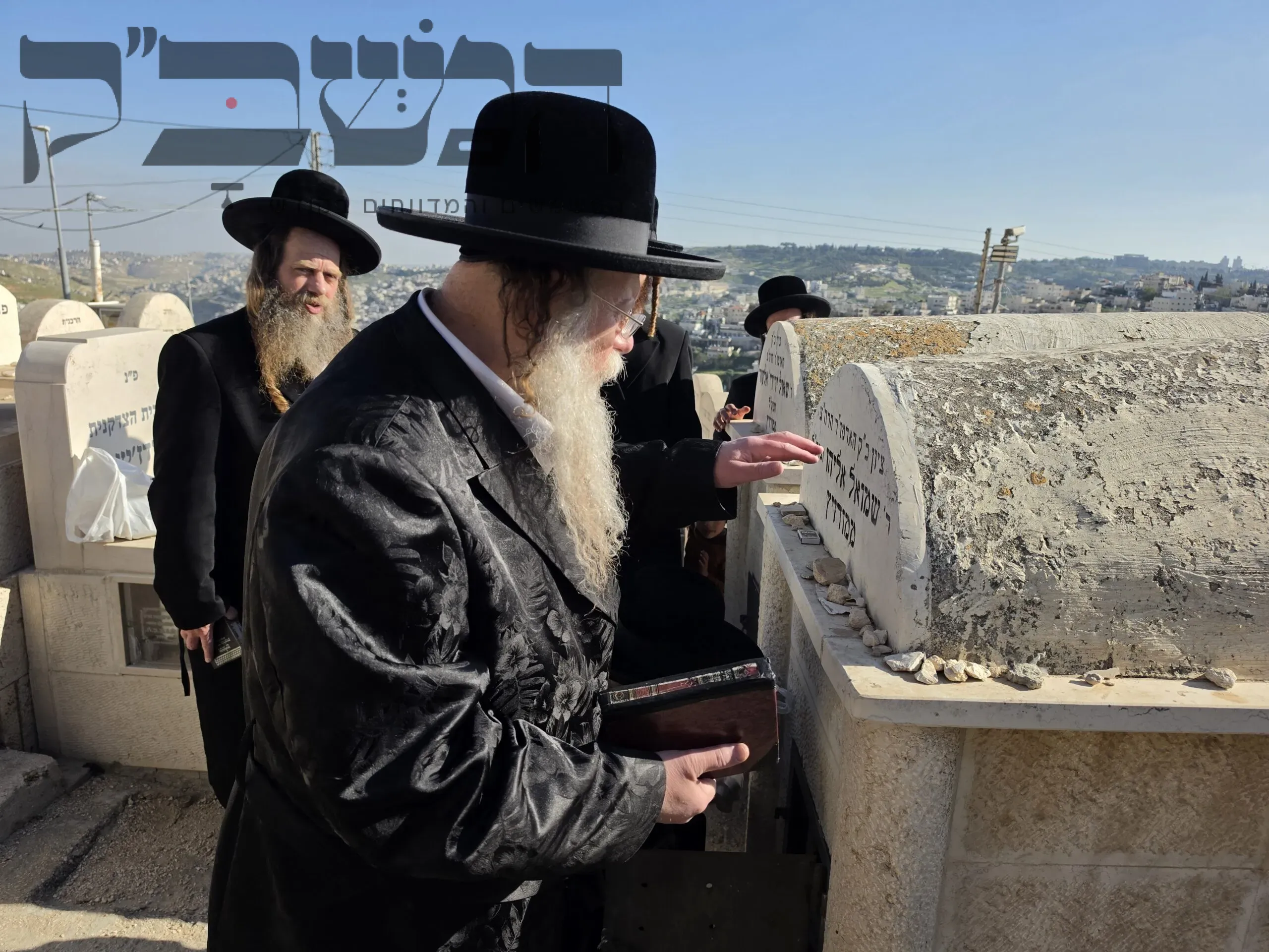 האדמו"ר מקוזמיר ערך סעודת הילולא לזקינו האדמו"ר 'האמרי אש' ממודזיץ זי"ע בבית מדרשו בבני ברק והעלה את זכרו הטהור. למחרת עלה הרבי עם קבוצה מחסידיו לפקוד את ציונו שבמרומי הר הזיתים . צילום: י. פריד