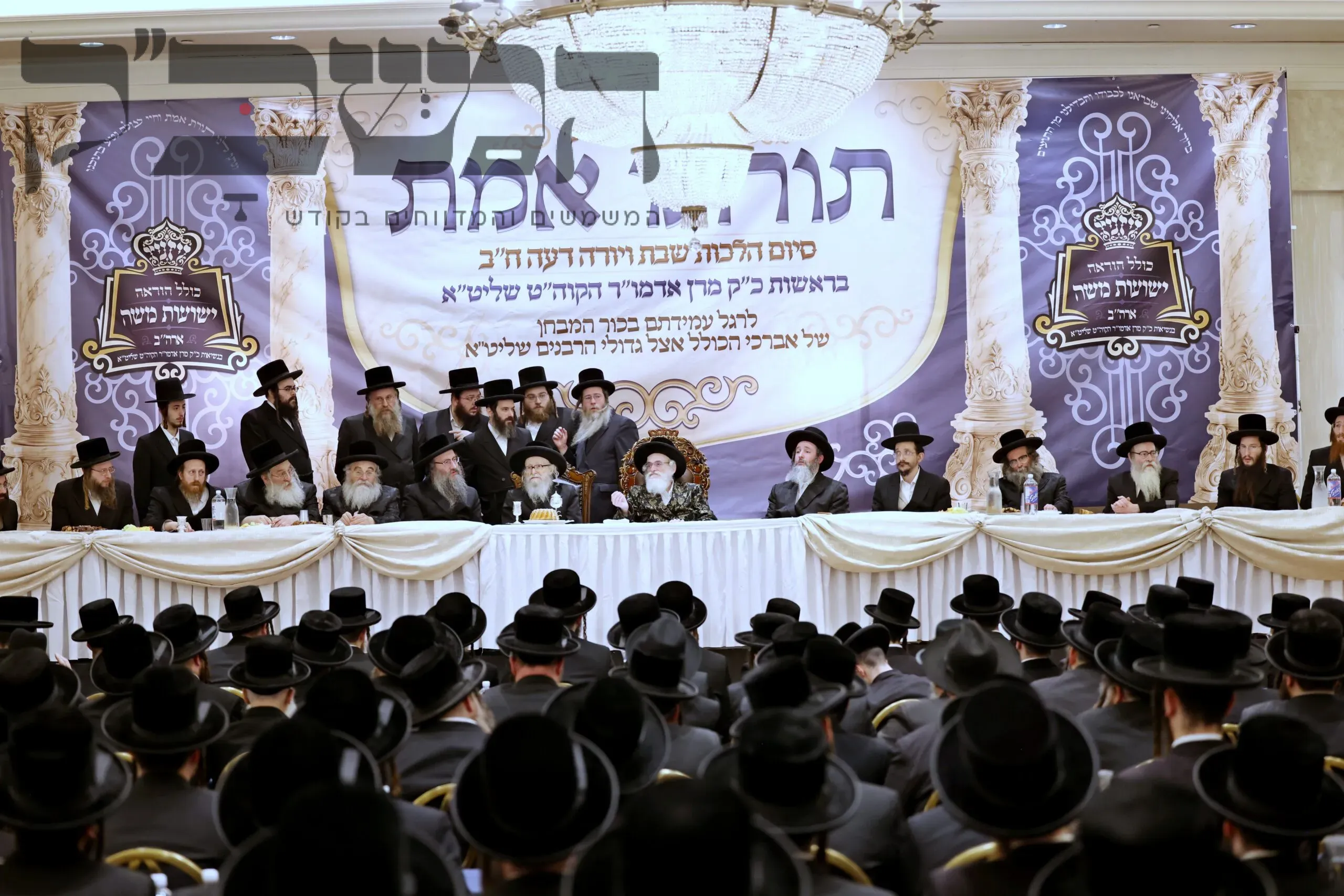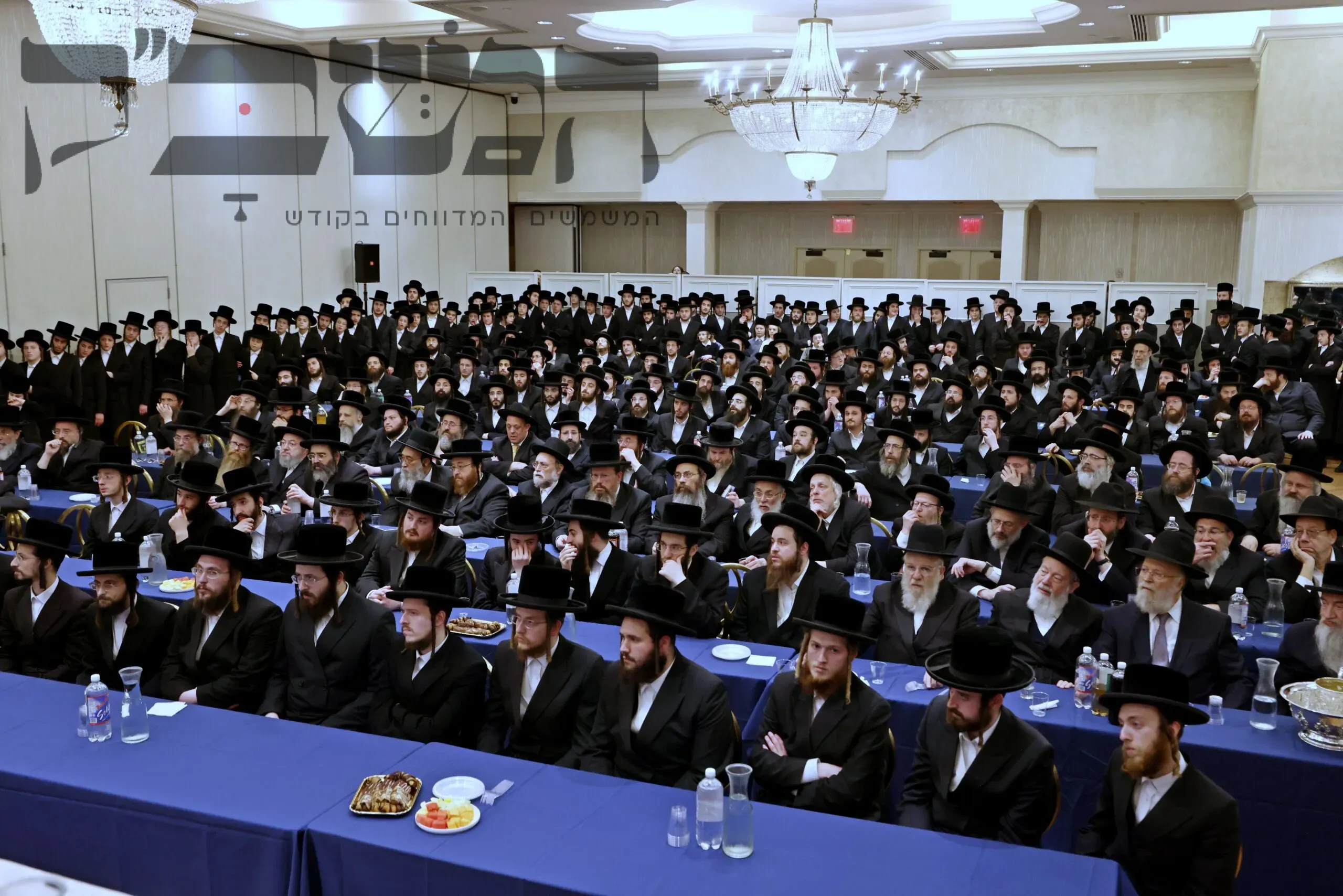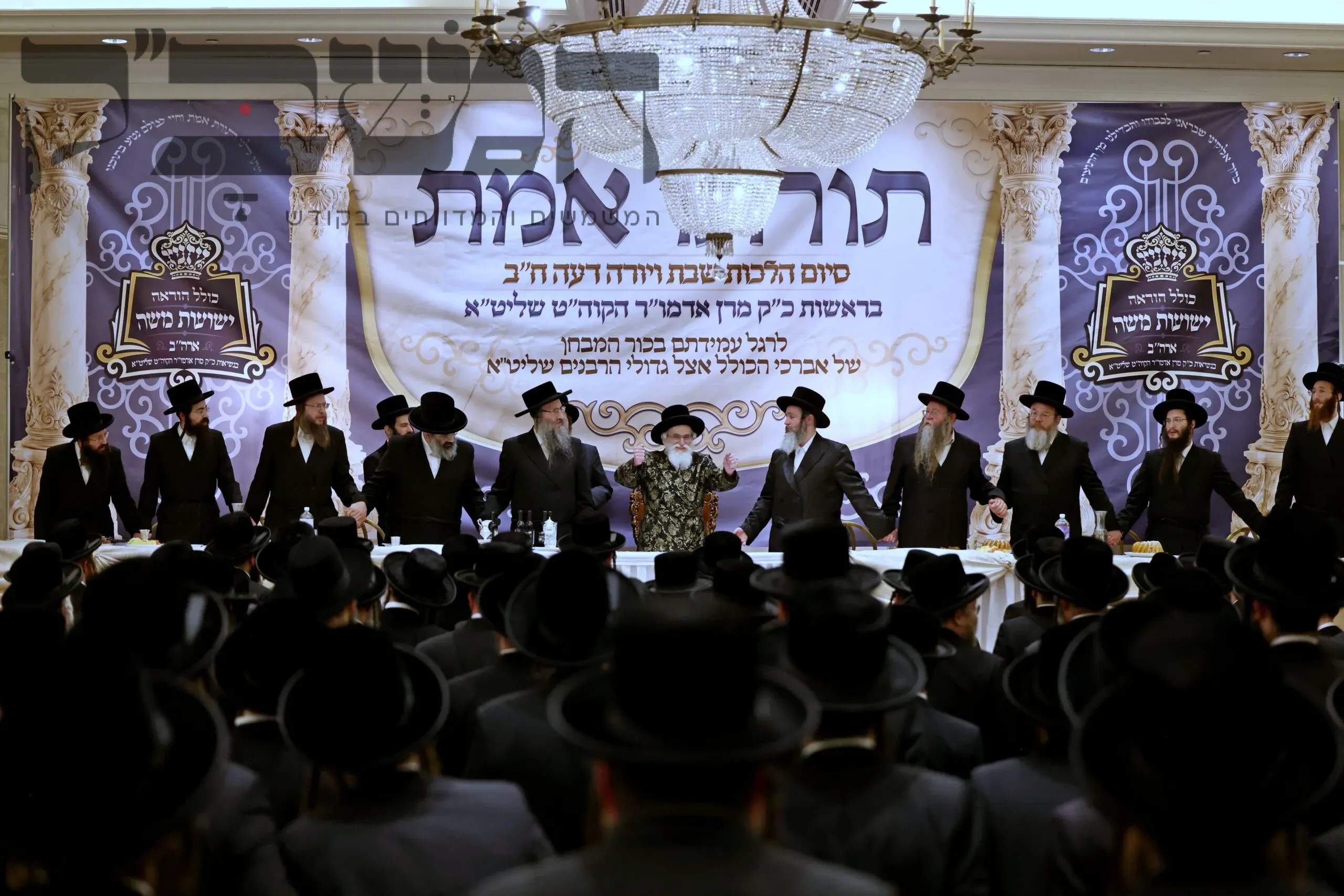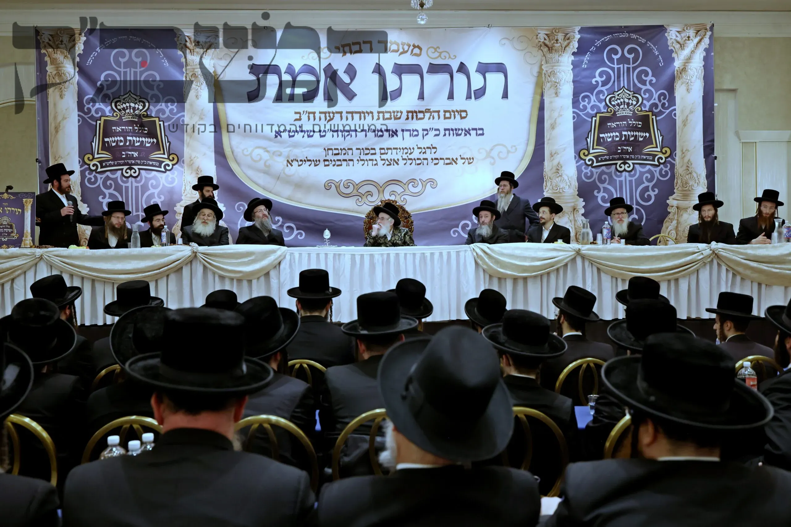 בראשות הרבי מויז׳ניץ: מעמד כבוד התורה ׳תורתו אמת׳ לעשרות אברכים שנבחנו על הוראה בכולל ויז׳ניץ בב"פ
