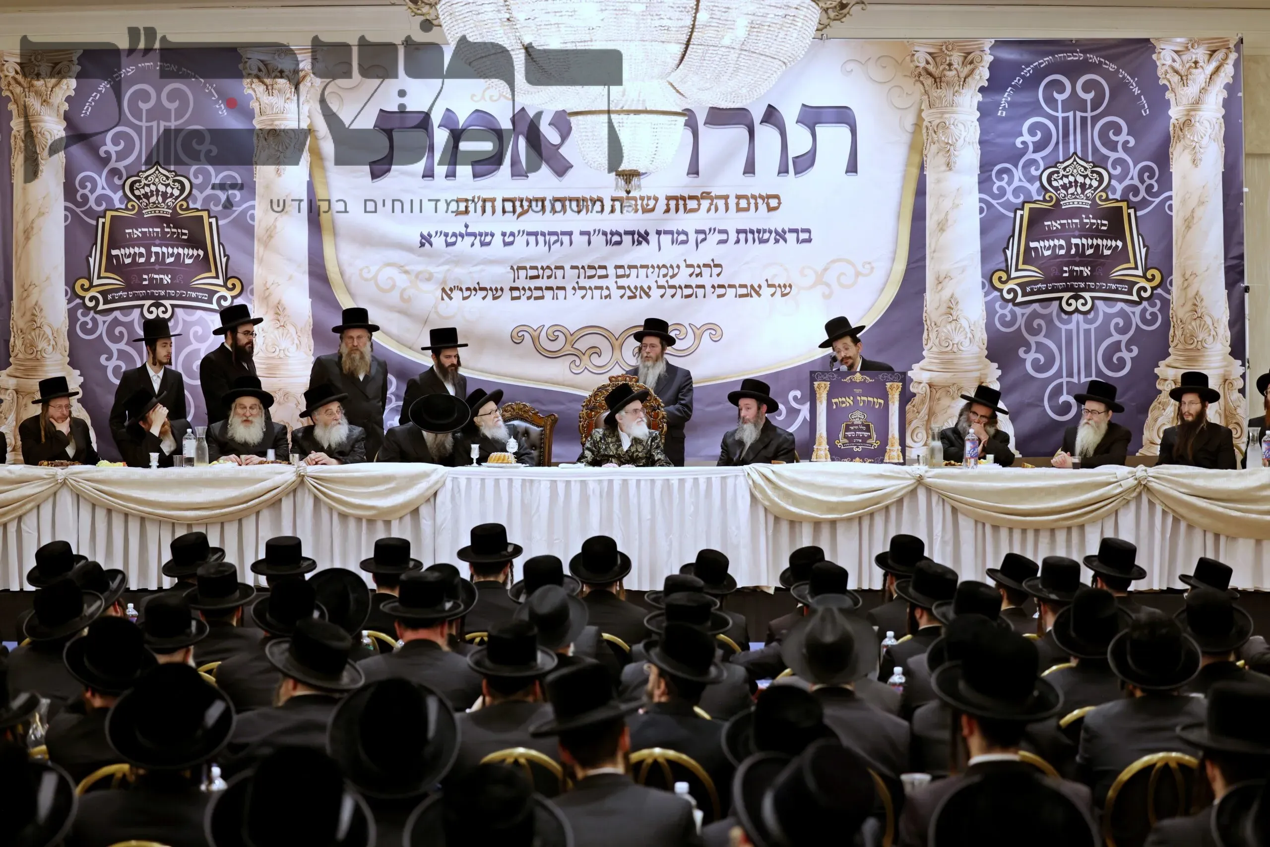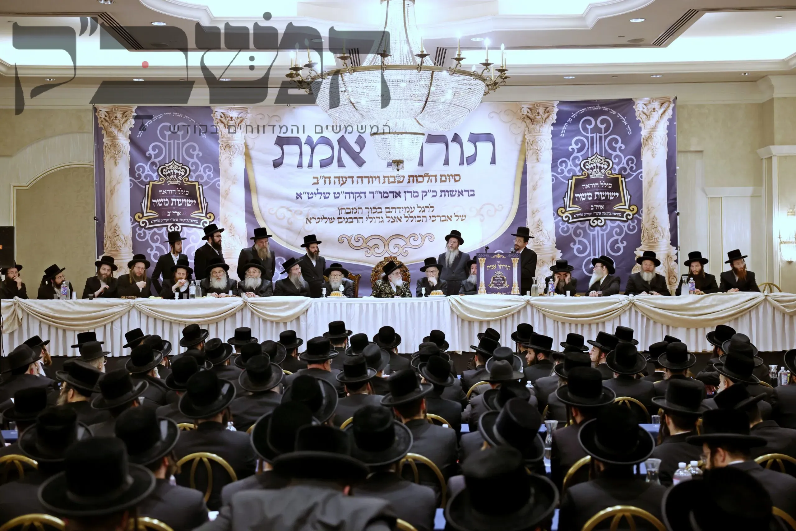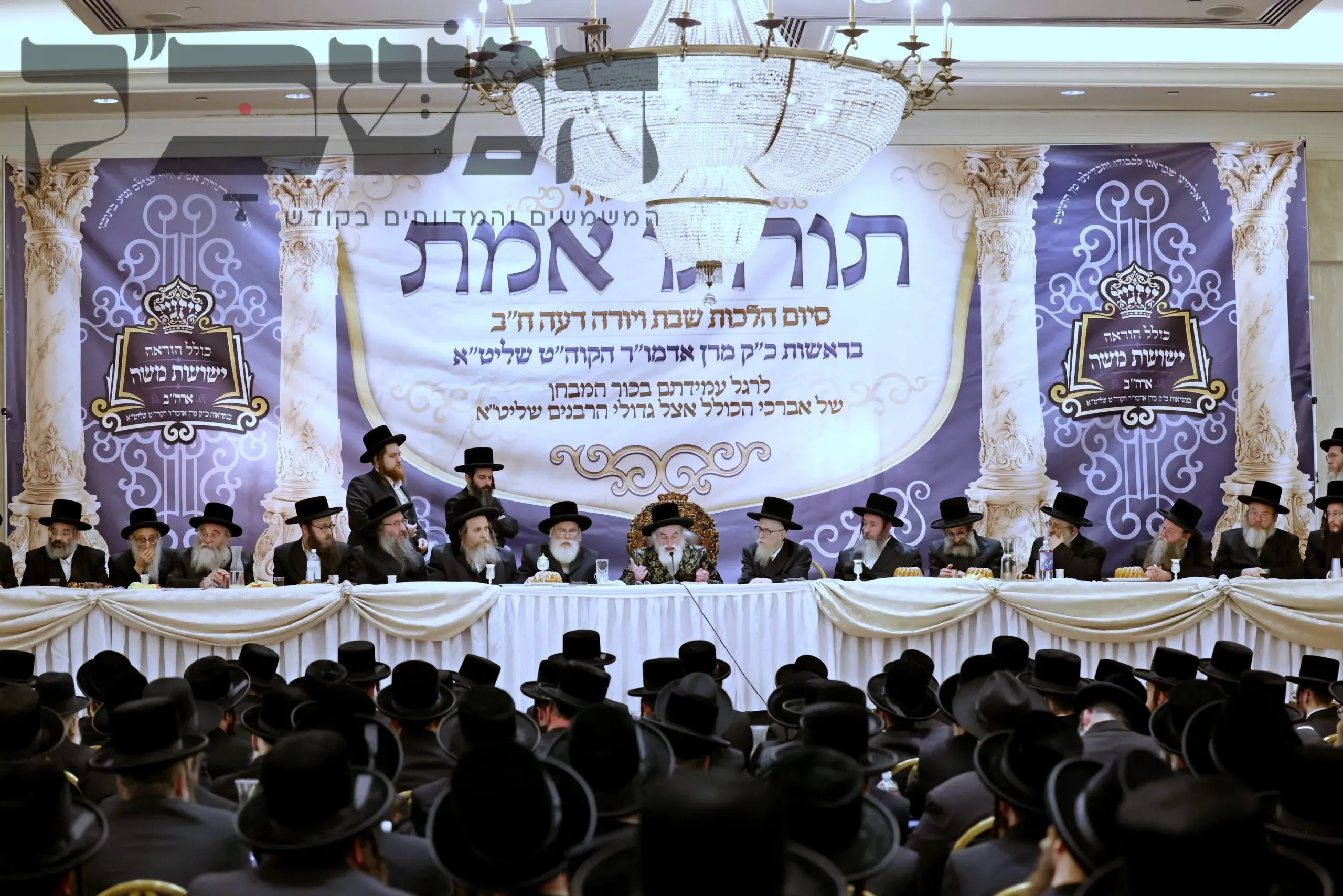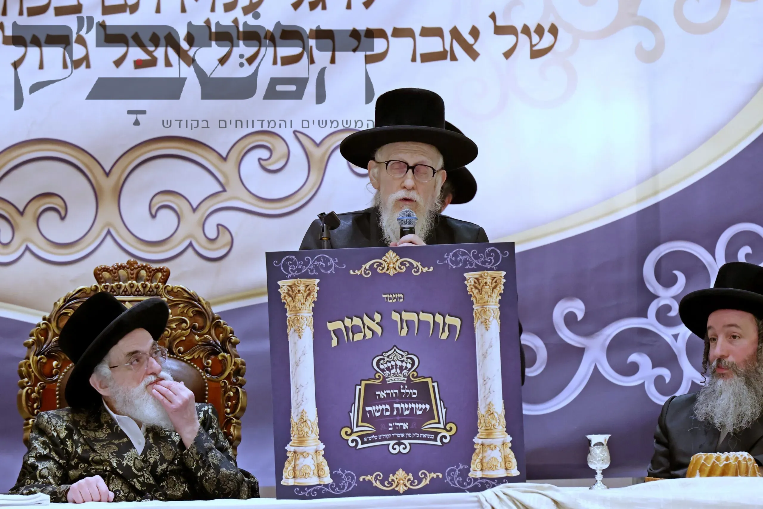 בראשות הרבי מויז׳ניץ: מעמד כבוד התורה ׳תורתו אמת׳ לעשרות אברכים שנבחנו על הוראה בכולל ויז׳ניץ בב"פ