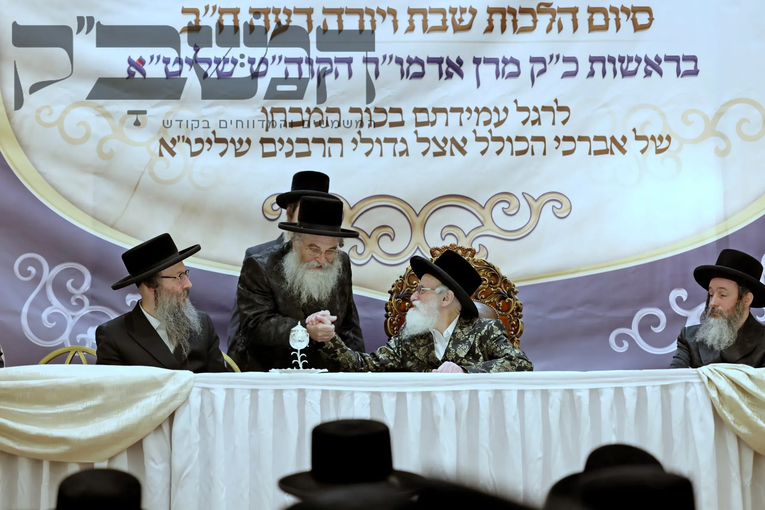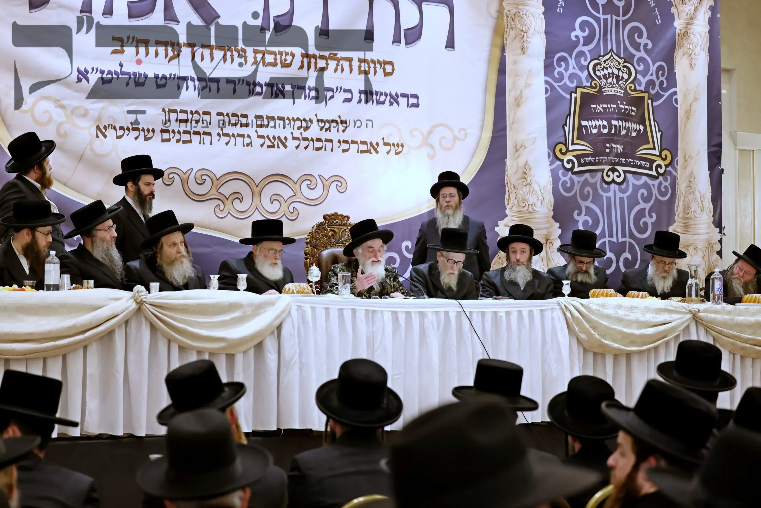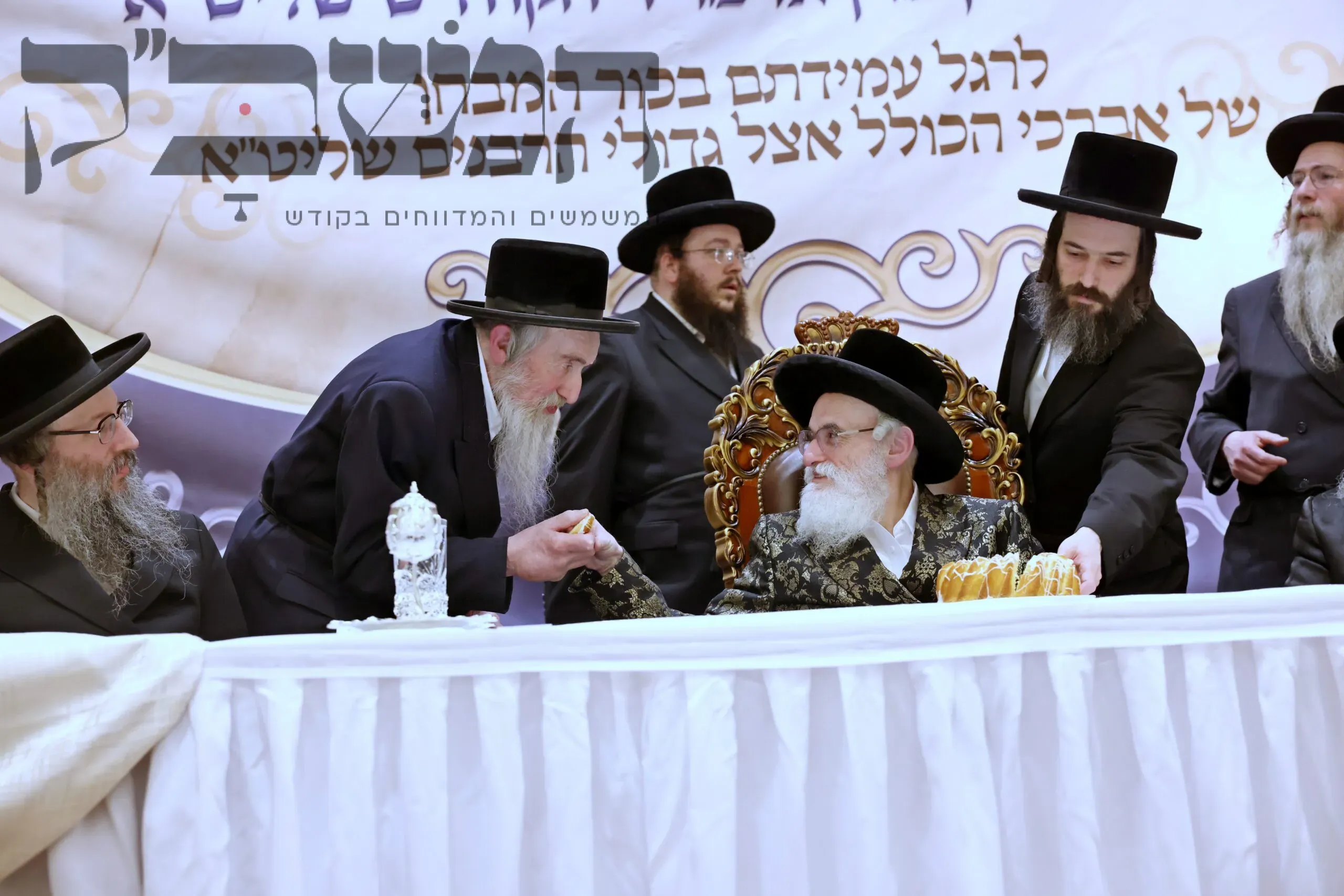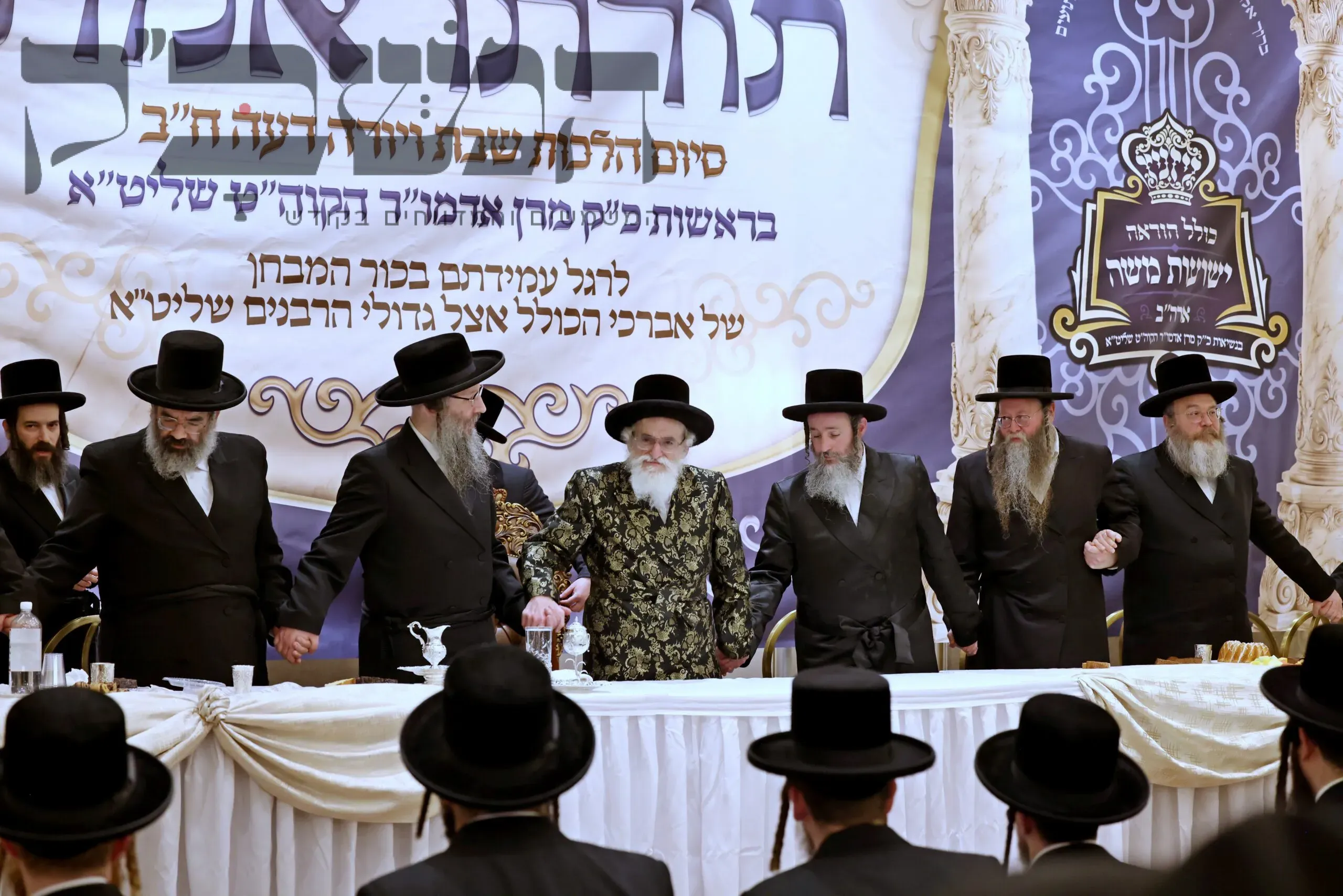 בראשות הרבי מויז׳ניץ: מעמד כבוד התורה ׳תורתו אמת׳ לעשרות אברכים שנבחנו על הוראה בכולל ויז׳ניץ בב"פ