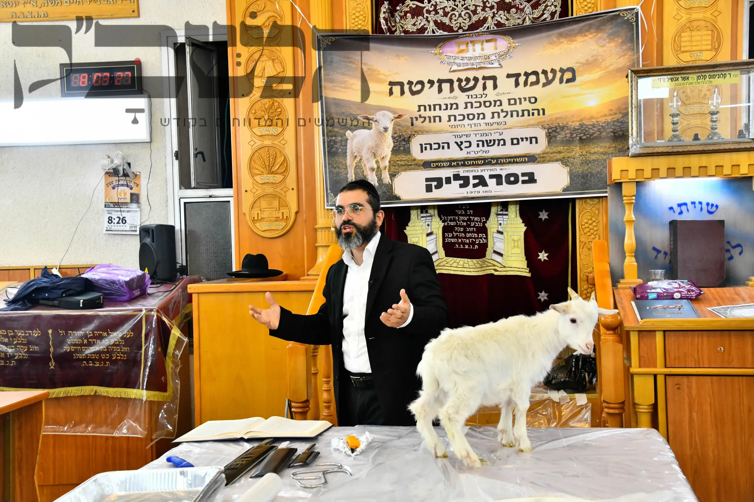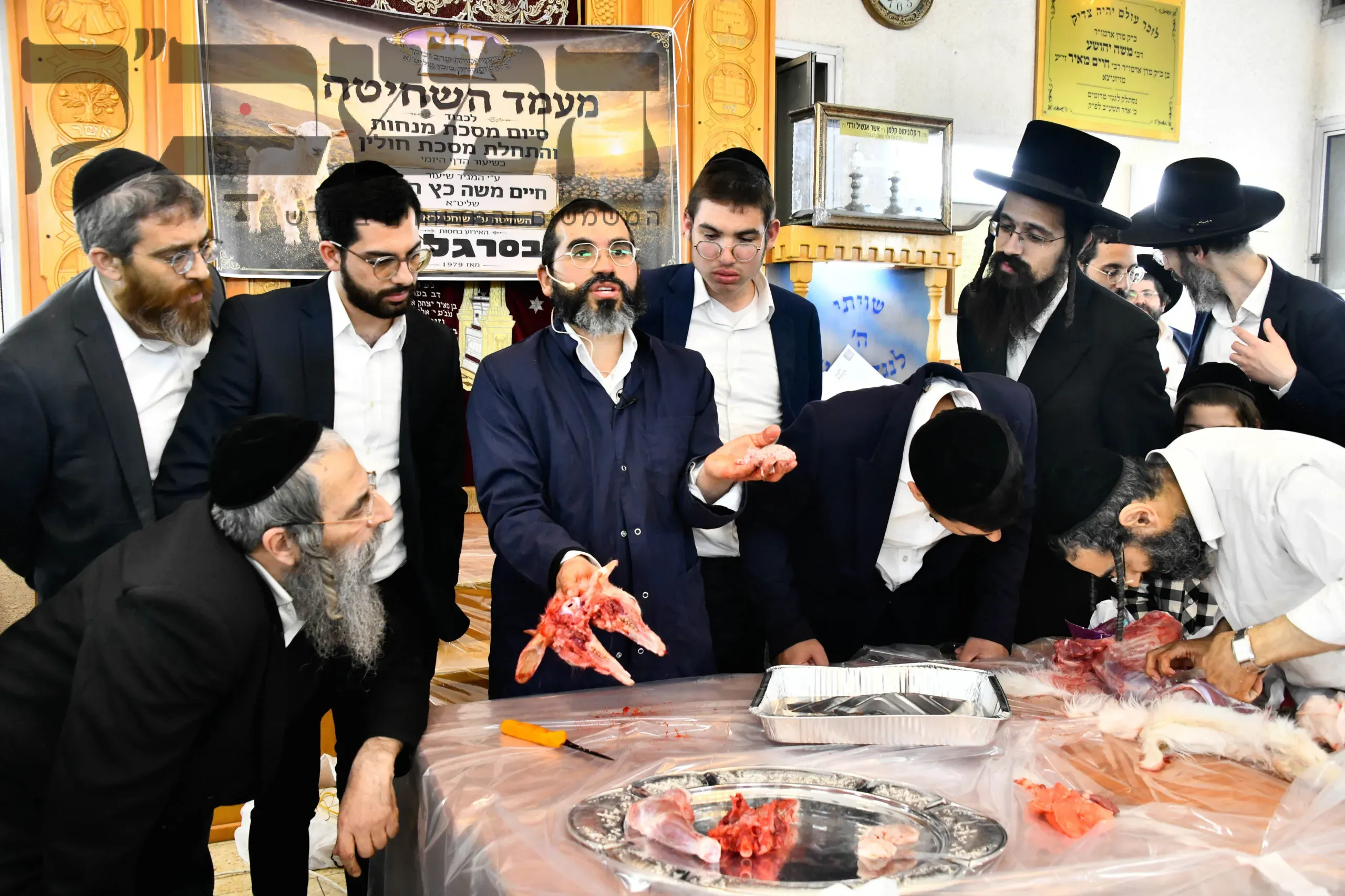 מעמד נדיר: שחיטת גדי בבית המדרש להמחשת מסכת חולין